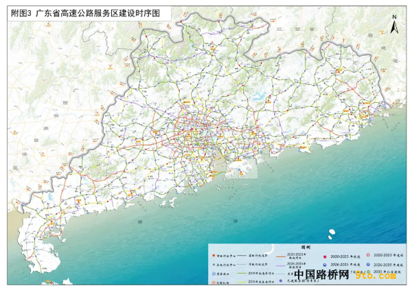根据《规划》,广东省高速公路服务区建设分为2020-2025年(近期)、2026-2035年(中远期)两个实施阶段。