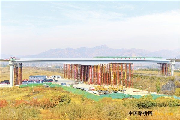 该转体桥由中铁六局北京铁建公司承建,是秦皇岛市第一座公路跨铁路钢梁转体桥,也是国道G102线秦皇岛市区段改建工程的关键节点工程,总长166米,桥面宽25.5米,上部采用钢箱梁结构,转体总重7849吨。